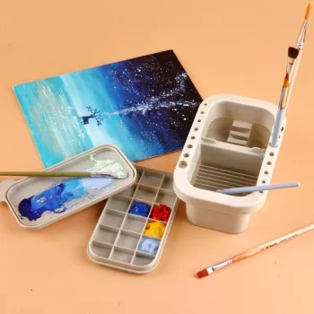 Multi-Functional 3-in-1 Pen Washing Bucket with Color Tray