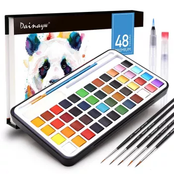48 Premium Watercolor Paint Set with Glitter Colors and Brushes
