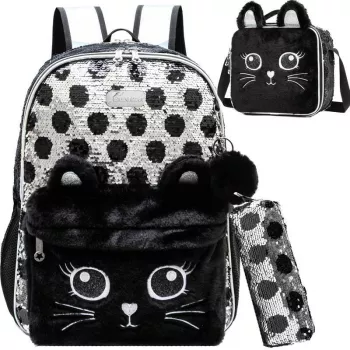 Magical Mermaid Sequin Backpack Set for Girls with Lunch Box
