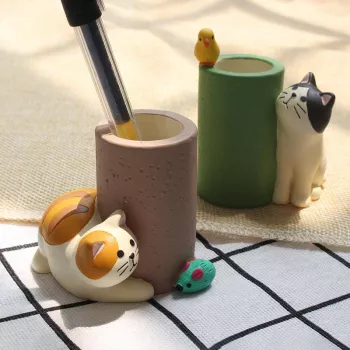 Cute Catching Mice Resin Pen Holder – Adorable Desk Organizer
